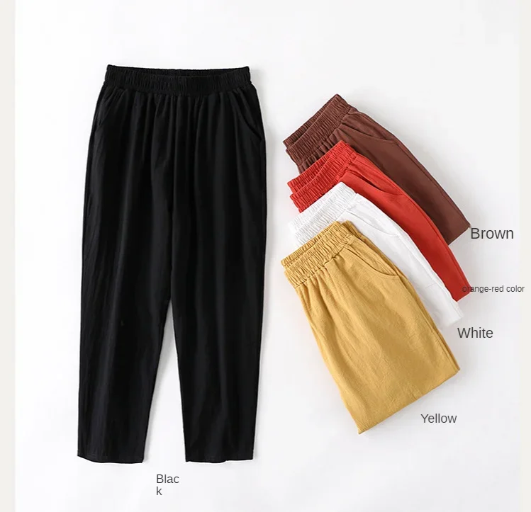 Spring Summer Cotton Linen Pants Large Size Women's Trousers Solid Casual Loose Linens Capri Pants Female Harem Pants Women